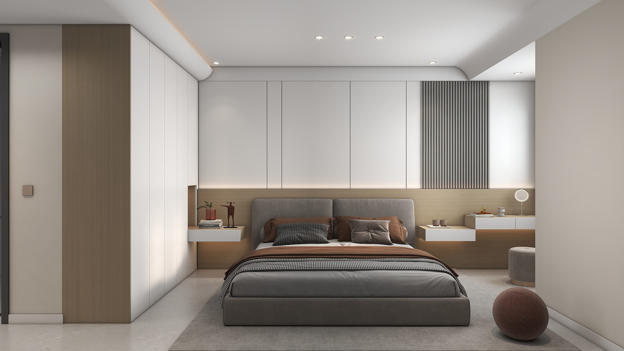 通过深浅色的搭配和细腻的细节处理,用心设计打造一个充满层次和明亮感的舒适温馨的居住环境。