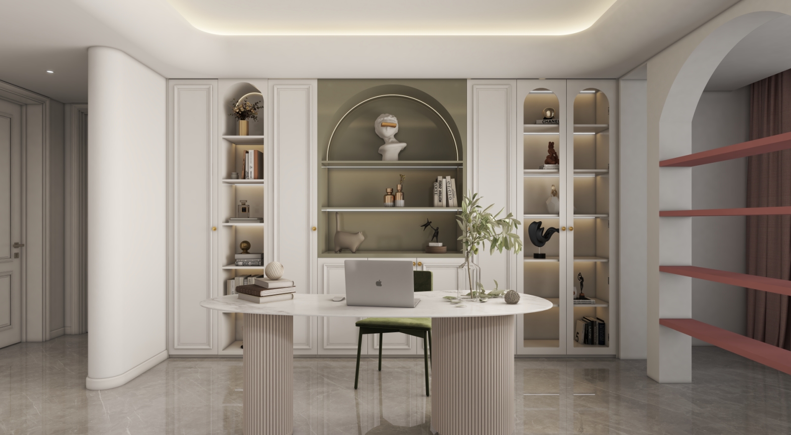 通过重新划分户型,将原本的卧室房间拆除,转化为书房,让原有的客餐厅变得更加通畅明亮。开放式的书房增加了客餐厅外部的活动区域,不仅使空间更显舒适,还提供了更多的灵活性和互动性。这种布局的变化使得整个空间更加开阔,同时也满足了现代人对于多功能、自由流动的居住需求。