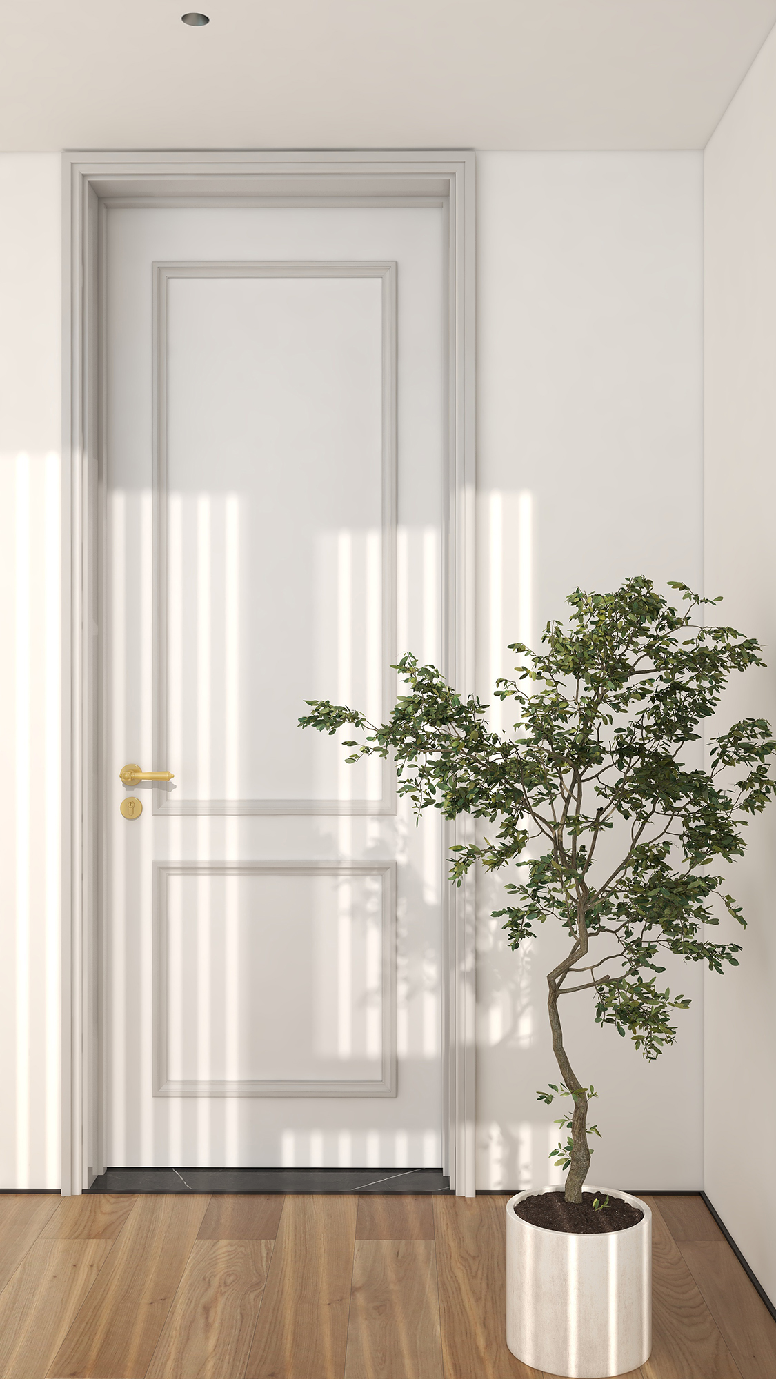 简单的设计往往能发挥更多的搭配空间,子午灰/博提白的色彩,低调若现,浅度灰色系干净温柔又亲切。整个木门以博提白色系为主,子午灰辅以点缀搭配,温柔又不失张力,适合喜欢简约风的人群。