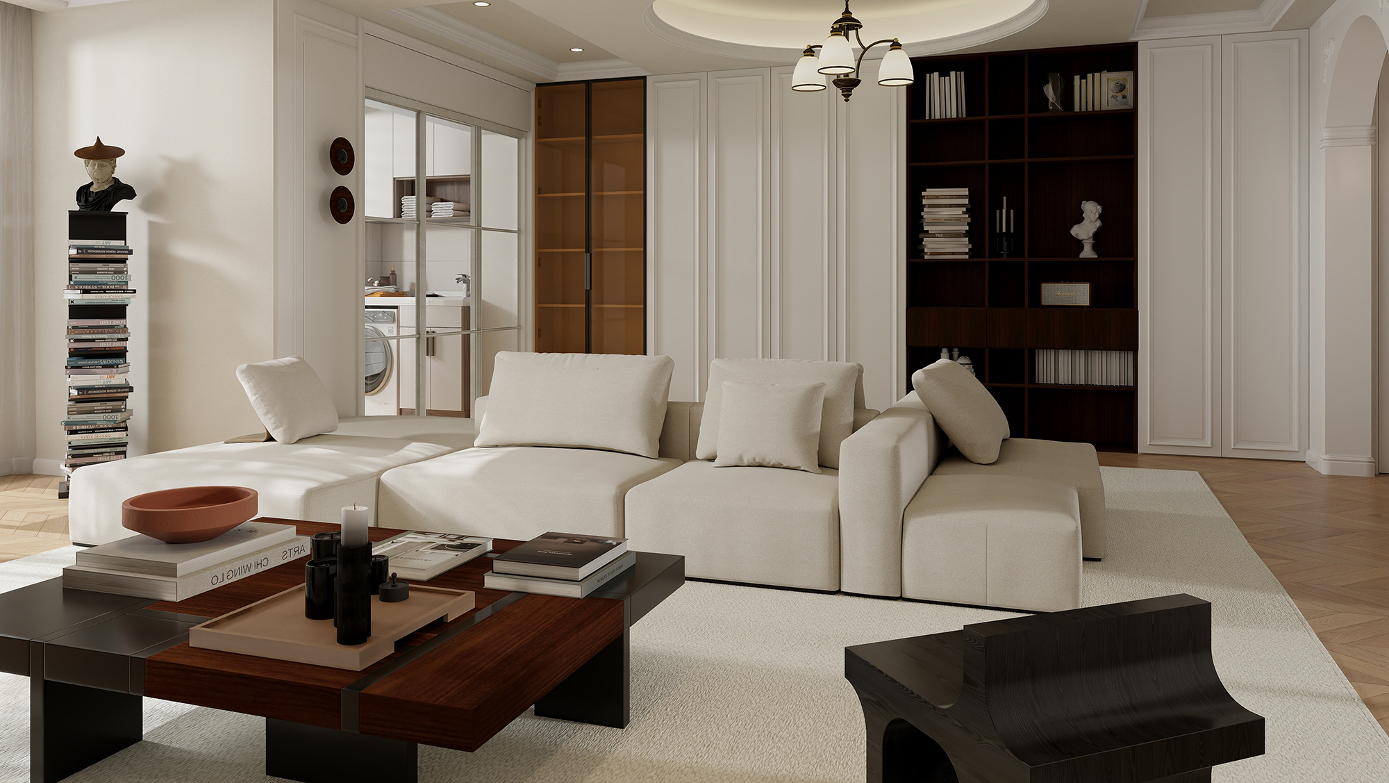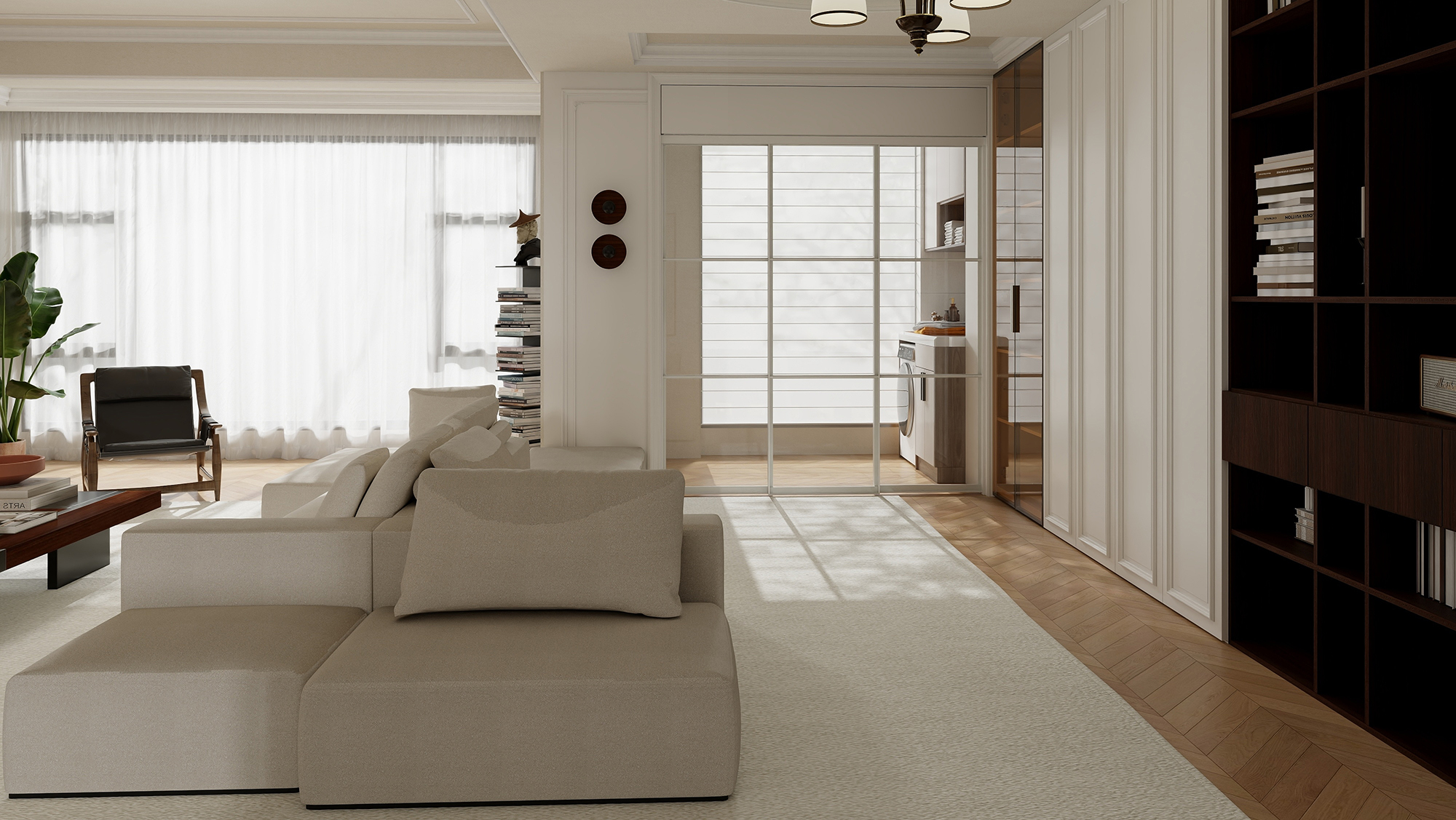 简约系列的美式复古家居设计注重简单、精致和实用。选用TATA木门纯净的贝母白和怀旧的美式胡桃材质,它融合了传统美式元素和现代简约风格的特点,让整个空间更加明亮、干净、舒适和自然。