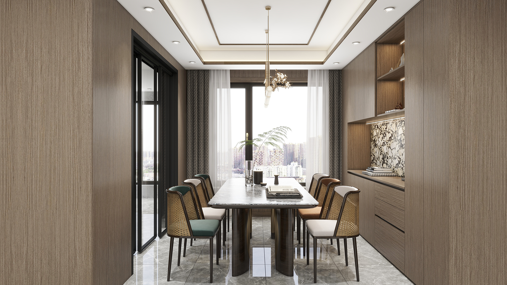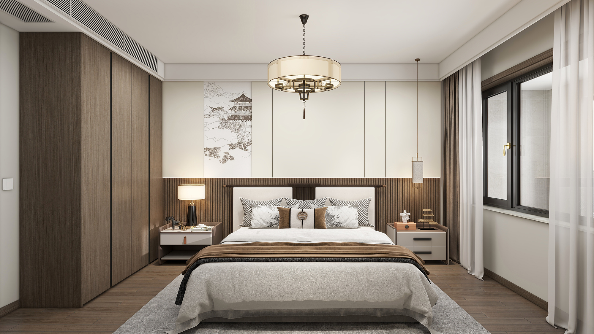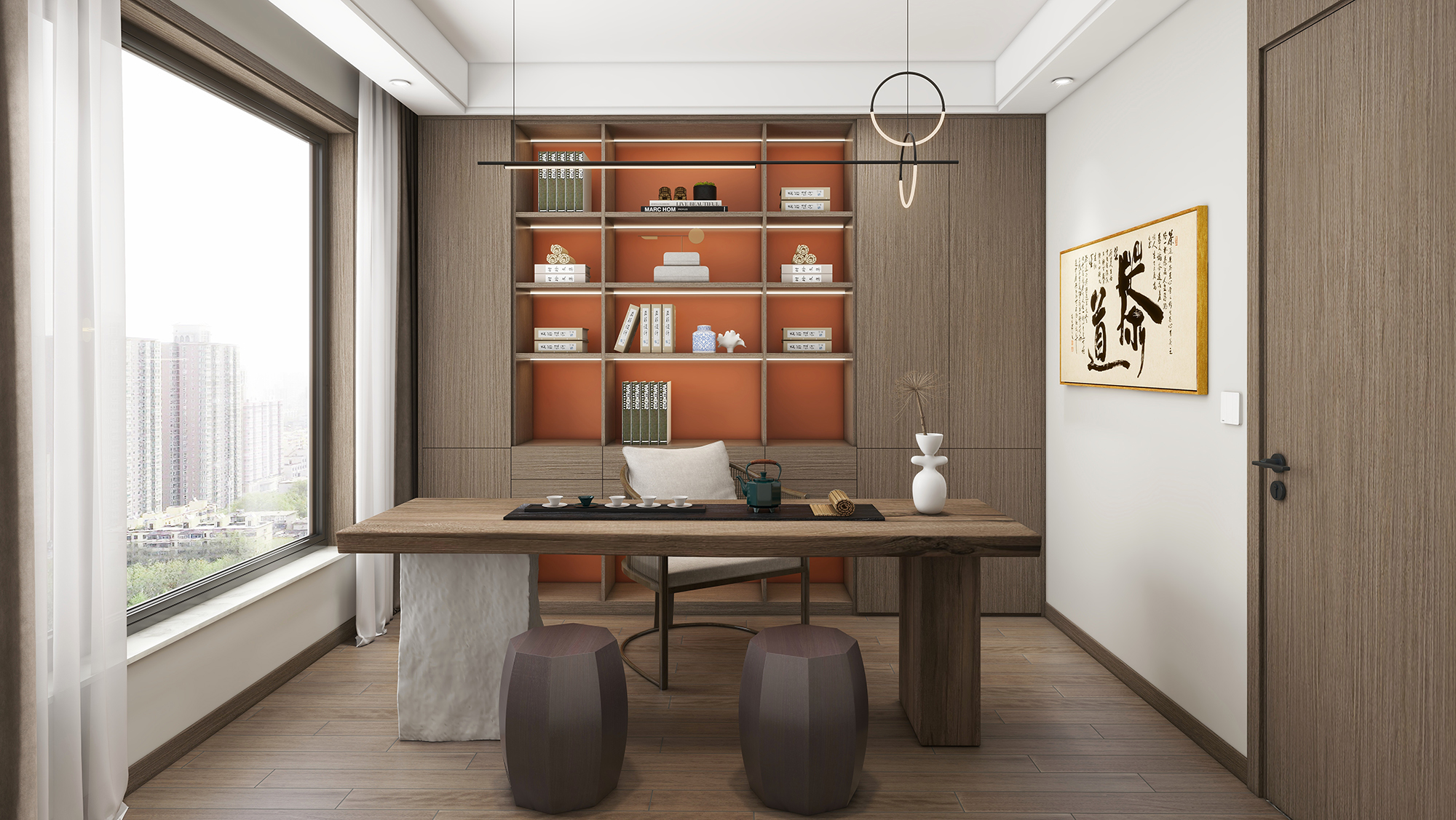 本案产品的整体设计偏禅意,以东方美学融入居室设计之中,取其神韵,存期风骨,典雅而又不乏时尚,整体营造出精致又不失简约的舒适氛围。室内架构与家具的材质,选择上则以木质为主,整体设计简洁大气,兼顾传统风韵与现代审美 留白 对成等都要体现出来,有机地建立起一种富有品质感的生活格调。