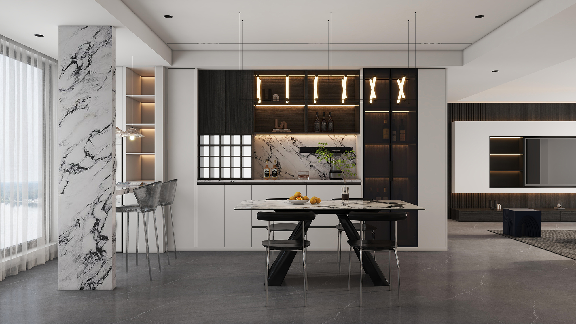 除了注入深沉的伯爵灰,还可以适度添加一些其他颜色的点缀,以增加空间的亮点和活力。与自然的连接,运用自然材料和绿色植物等元素,打造与自然和谐共生的空间。通过点缀和细节的处理,使整体空间更加生动有趣。