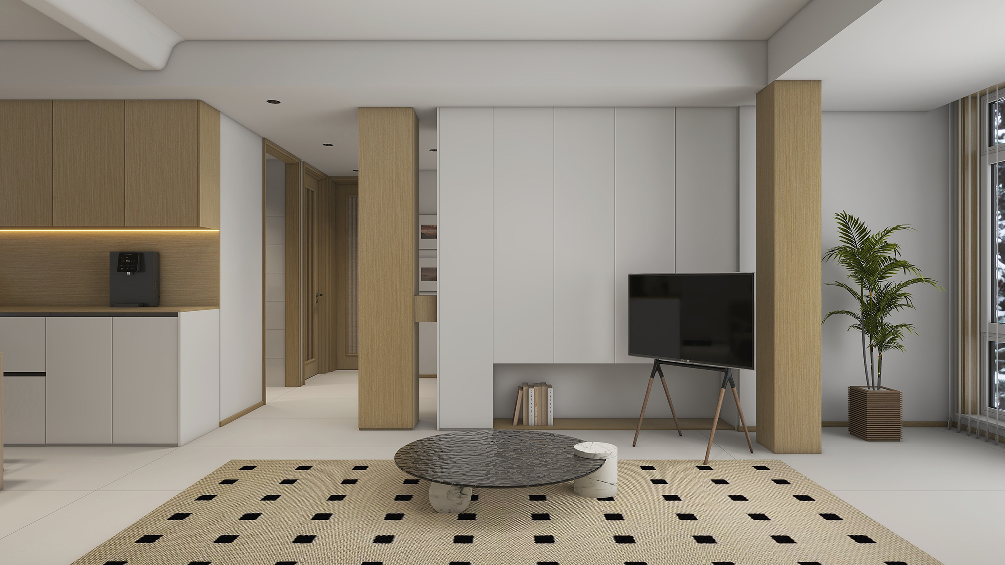 步入客厅,秋野原橡材质的背景墙映入眼帘,区别于传统的简约白墙,多了几分低调的小心机。沙发采用舒适的布艺和柔软的靠垫,让人感到宾至如归的舒适。茶几则是以灰玻为底色,搭配白色凳脚,展现出现代感和品味。想象平日在家休息,躺在沙发上看一本书,饮一杯咖啡,谁能拒绝这惬意的宁静片刻呢。