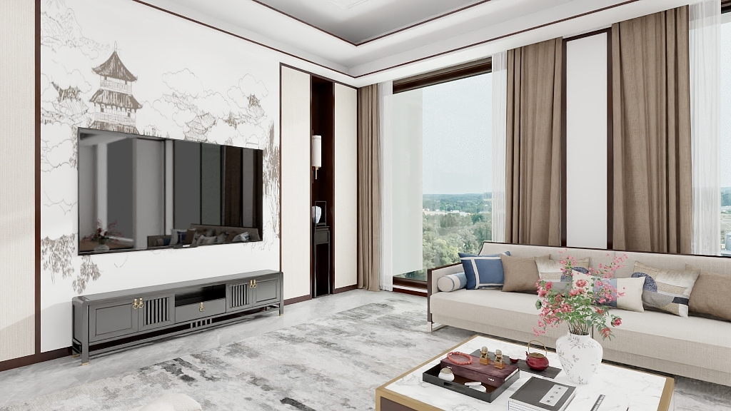 新中式风格注重将传统的中式元素与现代材质进行巧妙的搭配。强调人与空间的融合,追求舒适、自由的居住体验。运用传统元素,与现代材质如玻璃、金属等进行结合。灵活运用开放式设计和流动的空间布局,打破原有的传统束缚,创造出更加开放和自由的居住环境。这样的搭配使得空间既有传统的温馨感受,又不失现代的时尚气息。