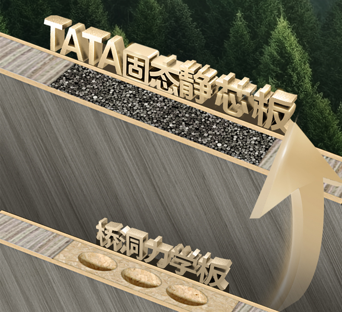 TATA固态静芯板是新型复合门芯填充材料,内部采用蜂窝状隔离舱结构。经权威机构检测,相较于桥洞力学板由该板材填充的门扇(45MM),降噪效果可提升2分贝。