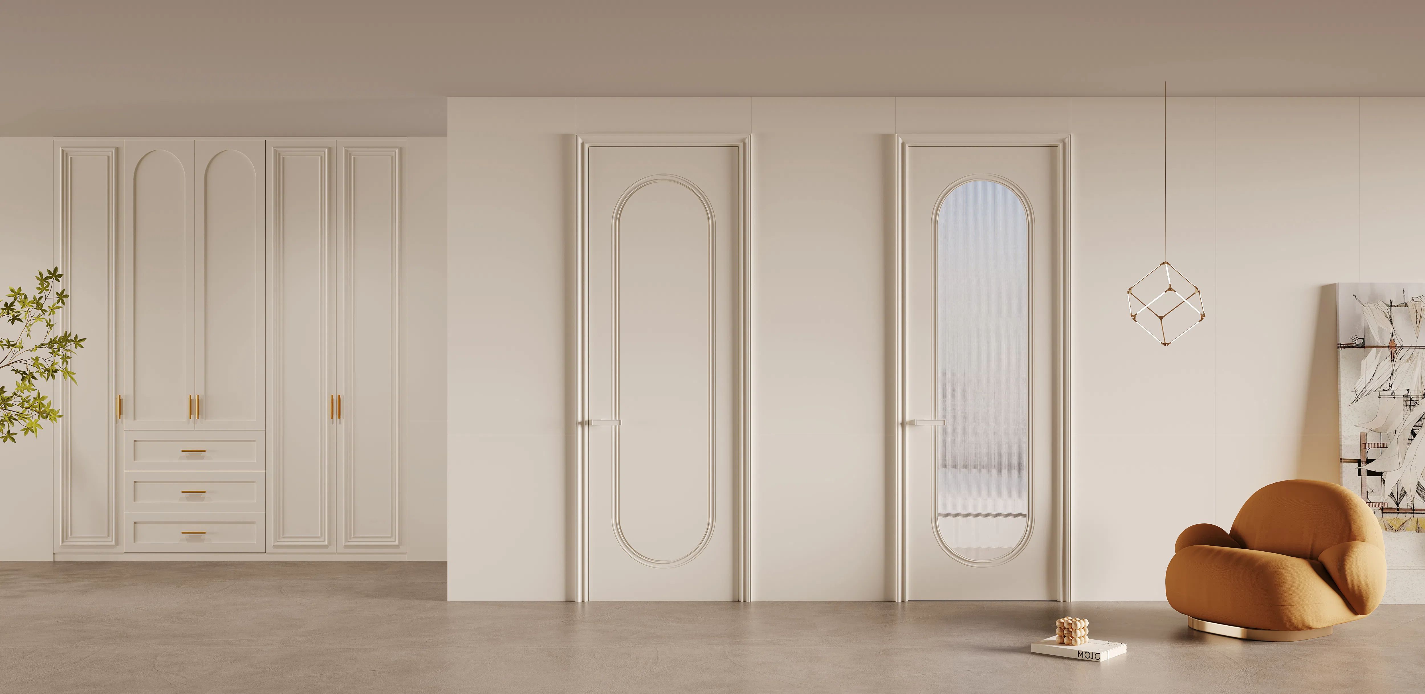 法式风格的设计元素在这几款木门上得到了完美的体现。门板上细腻的雕刻纹理,仿佛在讲述着一个个浪漫的故事,让人仿佛置身于法国的乡村别墅之中。而门框的弧形设计,更是增添了几分柔和与温馨,使整个门看起来更加立体和动感。