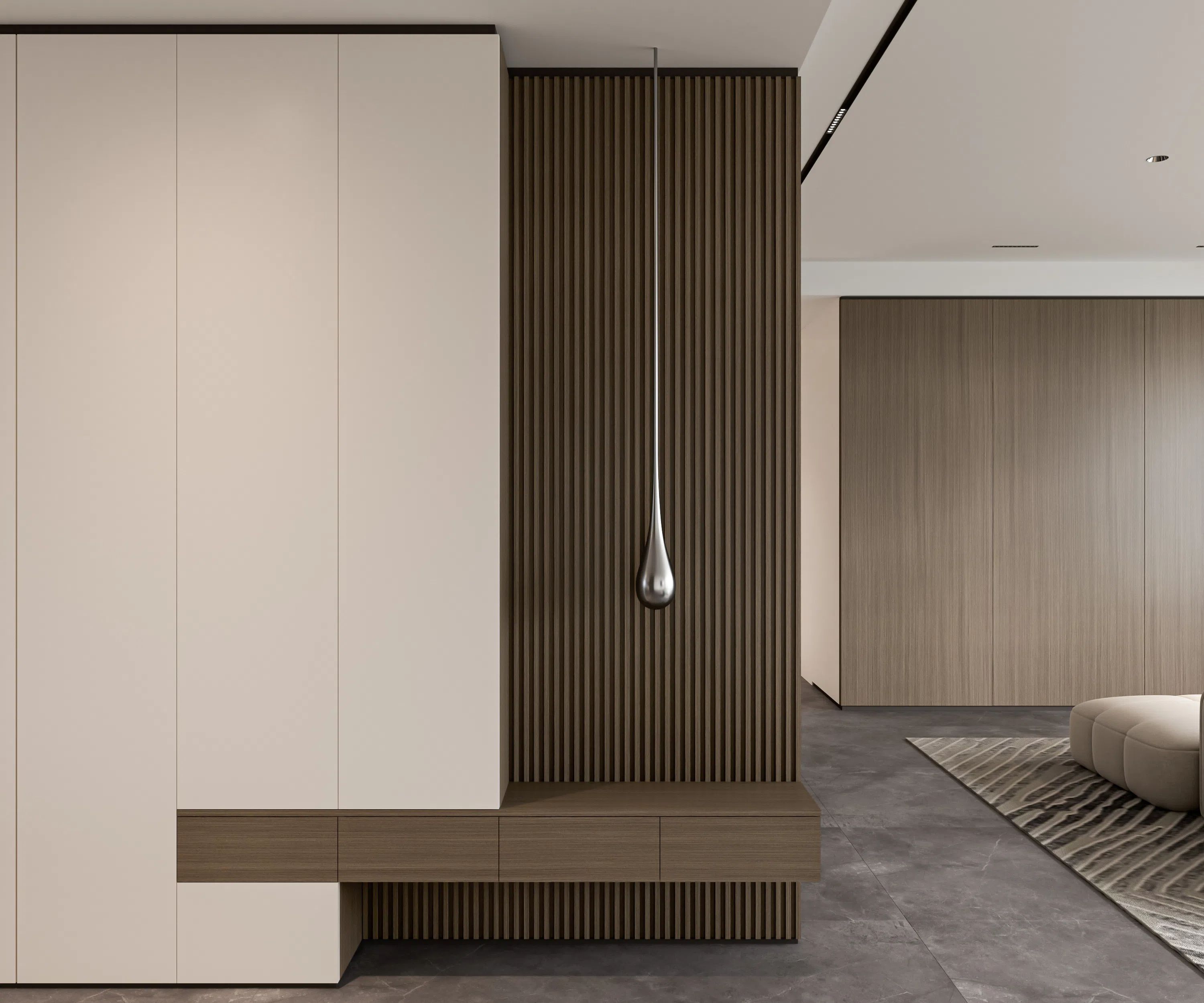 格调木纹的自然质感,与简约白墙相互搭配,为空间打造返璞归真的韵味