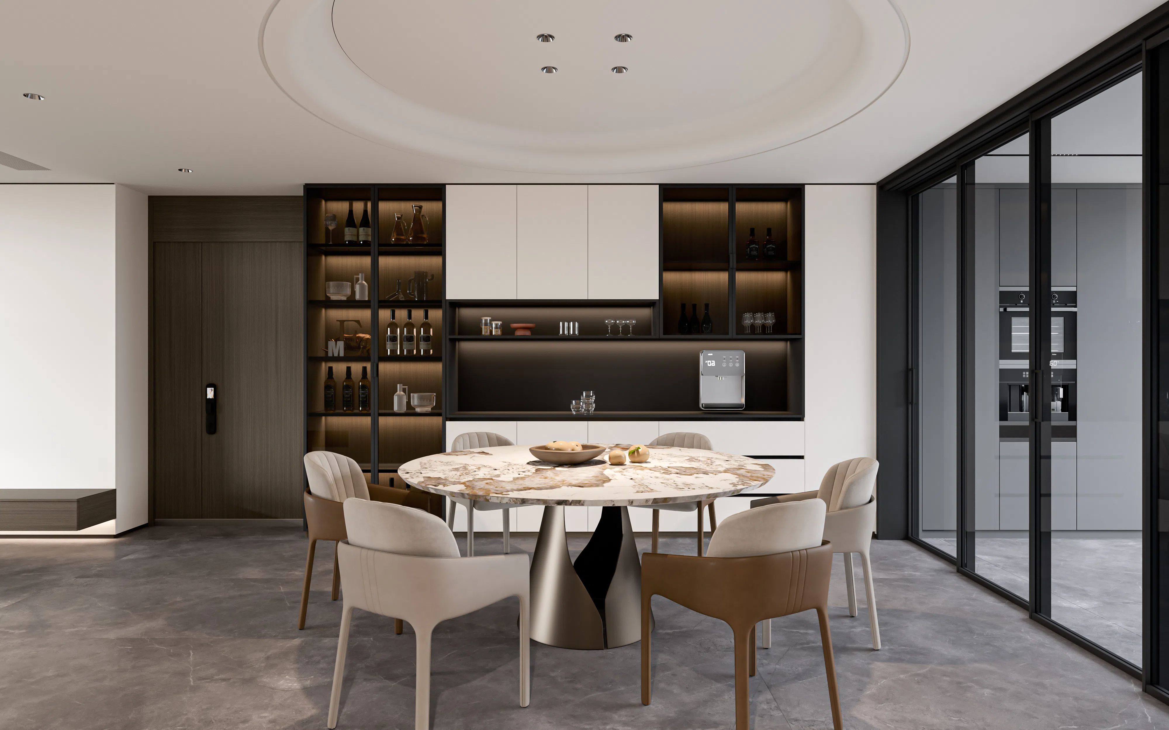 中间专设一处水吧台,每天给自己做一杯咖啡、小酒不仅实用,还能瞬间提升餐厅格调