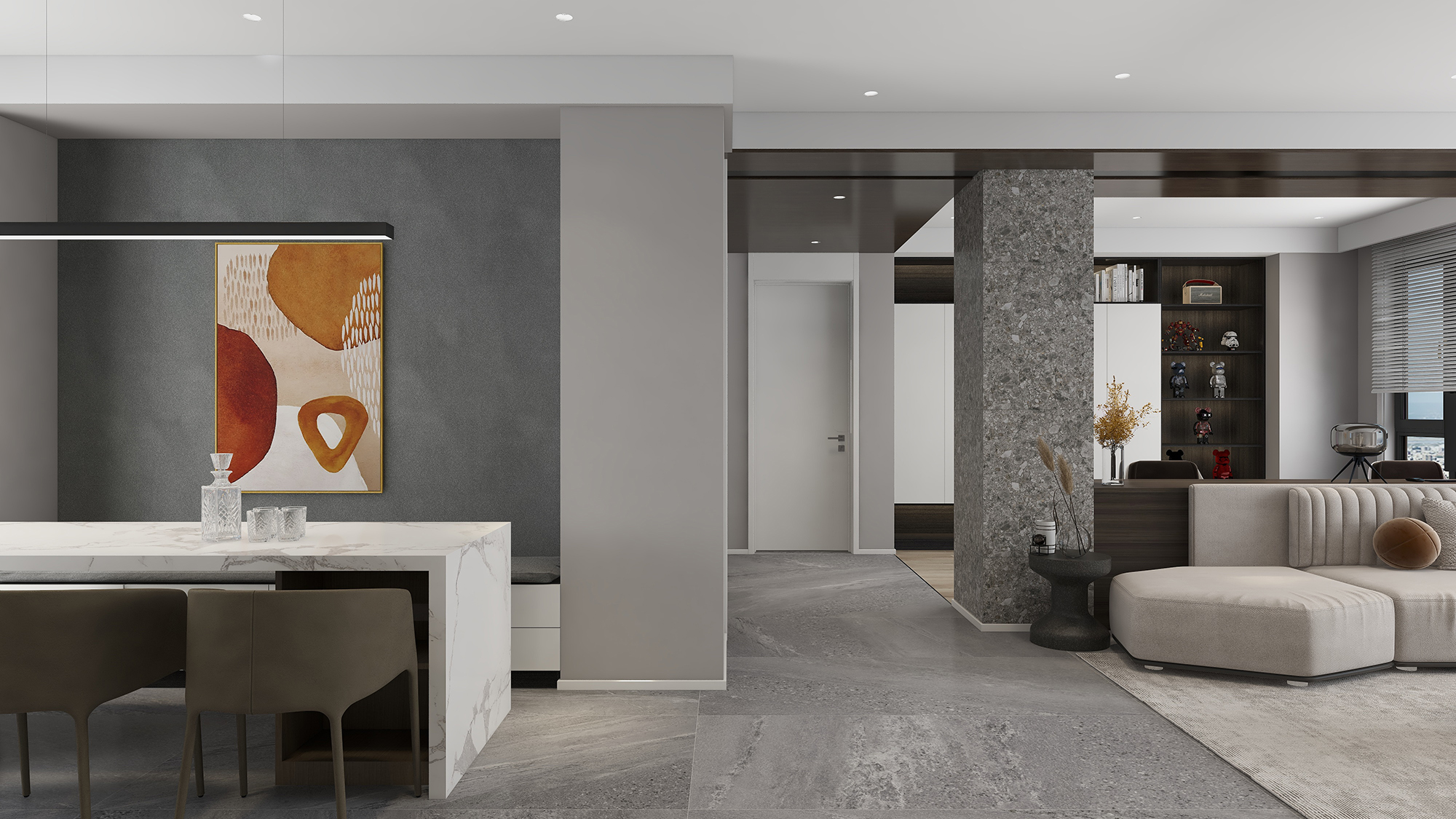 都知道灰色高级,但又担心过度的高级感会让家的生活感消失。暖灰色介于灰色和棕色之间,给人一种温暖和舒适的感觉。