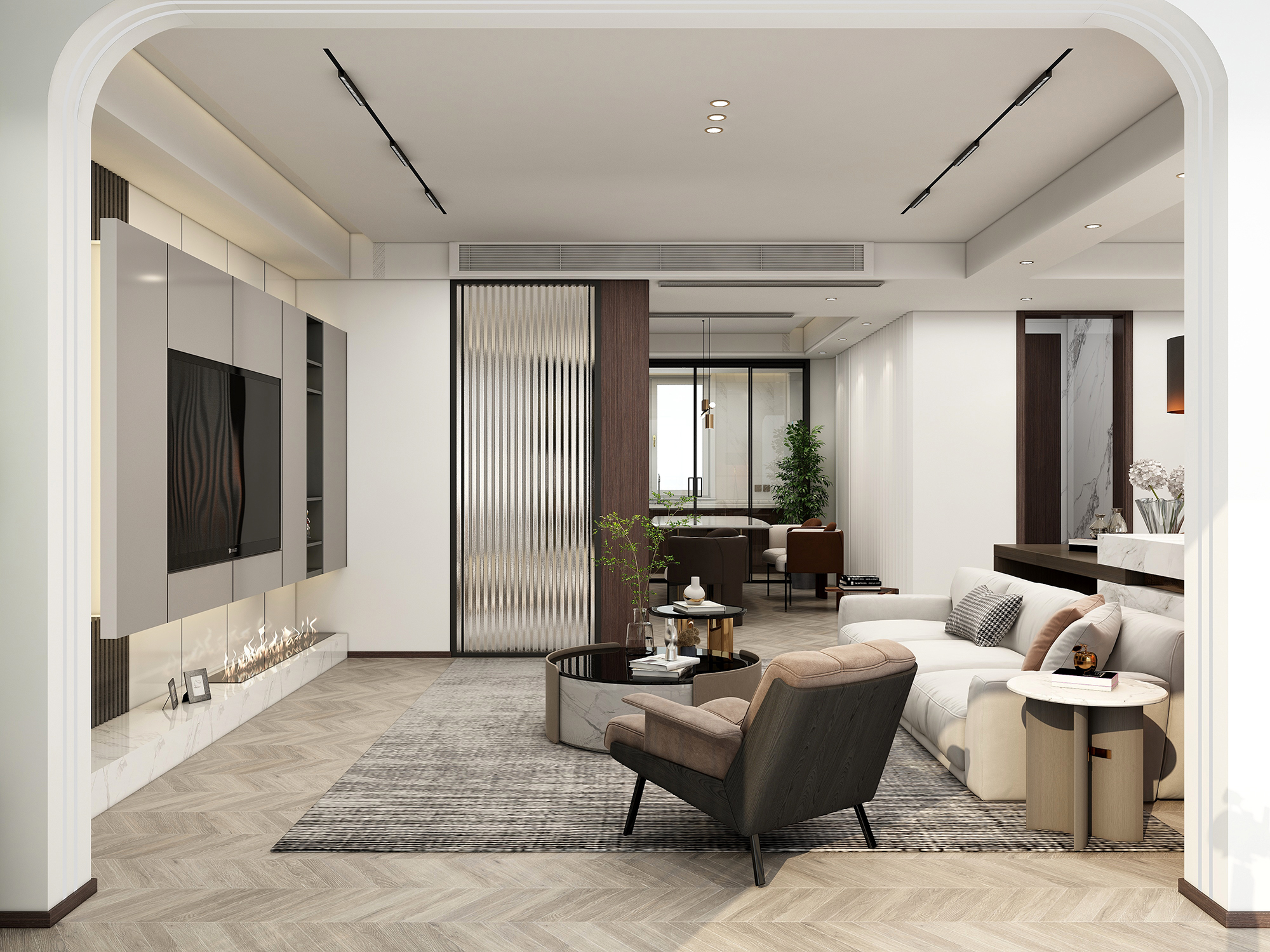 对于不做全开式布局的家庭来说,尤其是小户型,想要实现空间最大程度的显大,并且尽更可能多的将自然光线引入室内,极简推拉门绝对是你的不二之选。