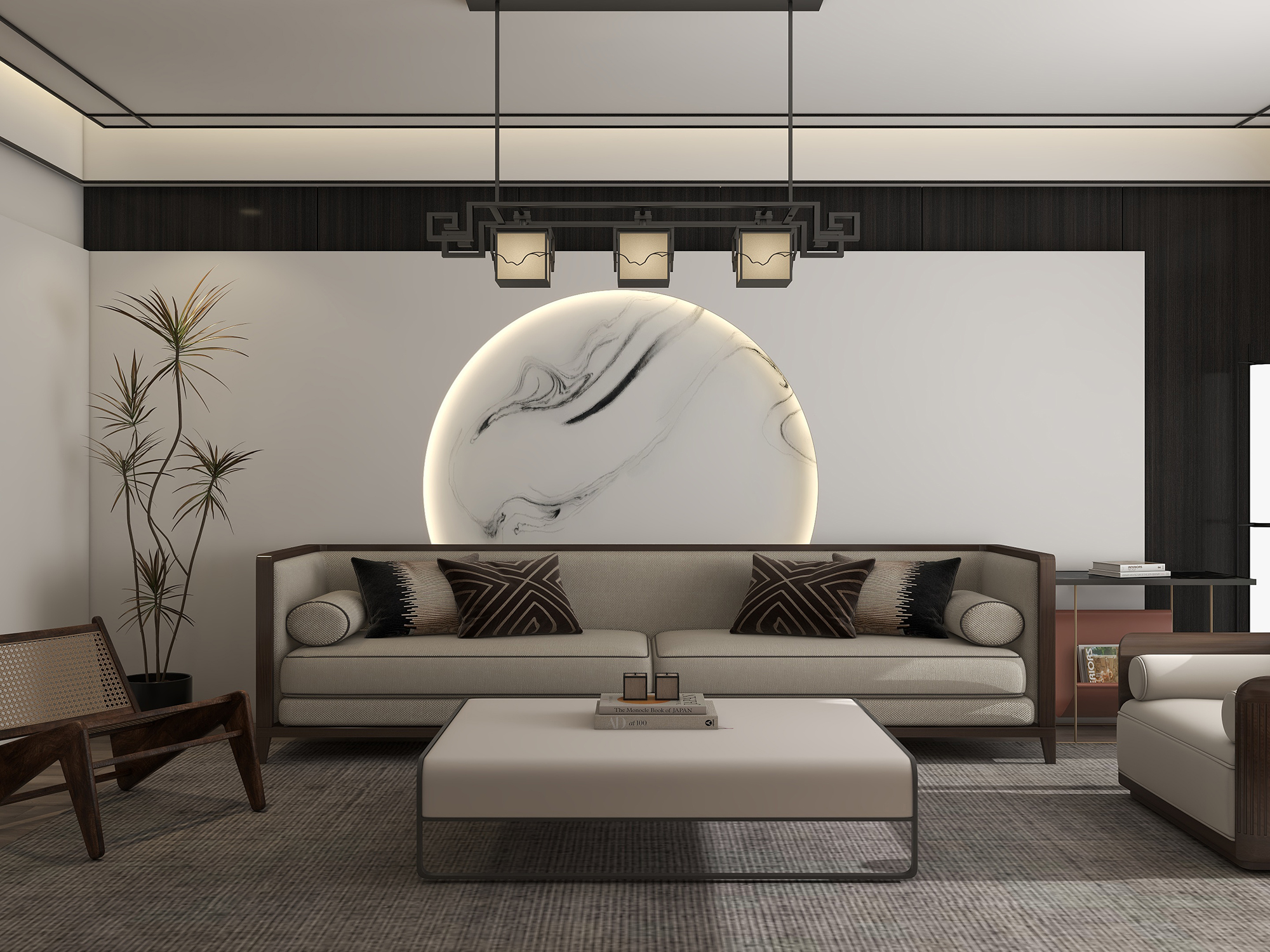 新中式风格,融合了传统中式元素和现代设计理念,注重平衡、和谐和自然的氛围。