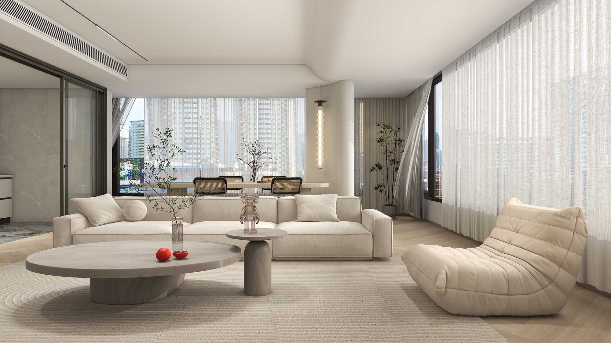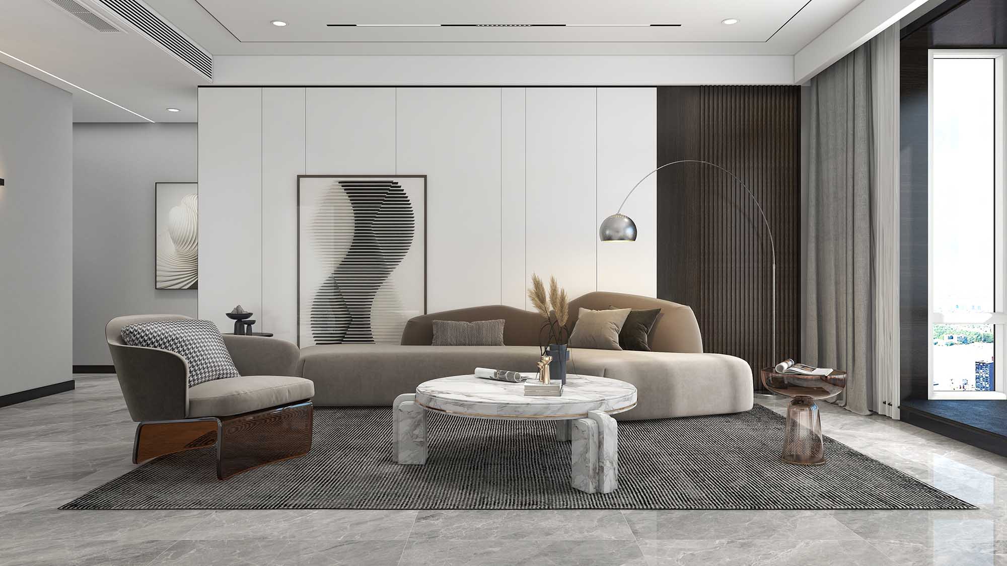 全屋方案以现代简约风格最大化地呈现户型优势,运用大理石,木饰面,金属色等材料,呈现一种年轻化富有时尚感的轻奢气质。