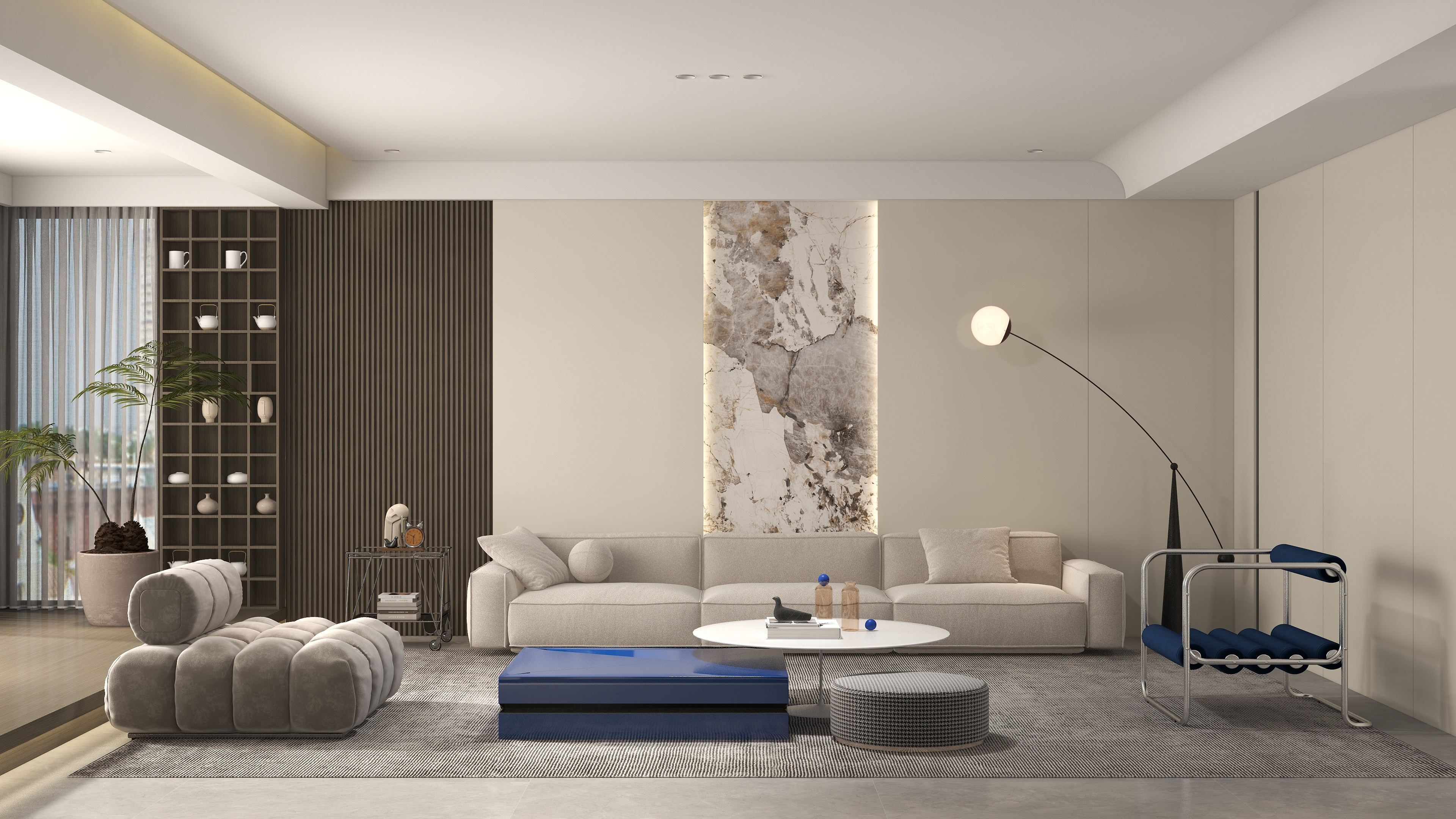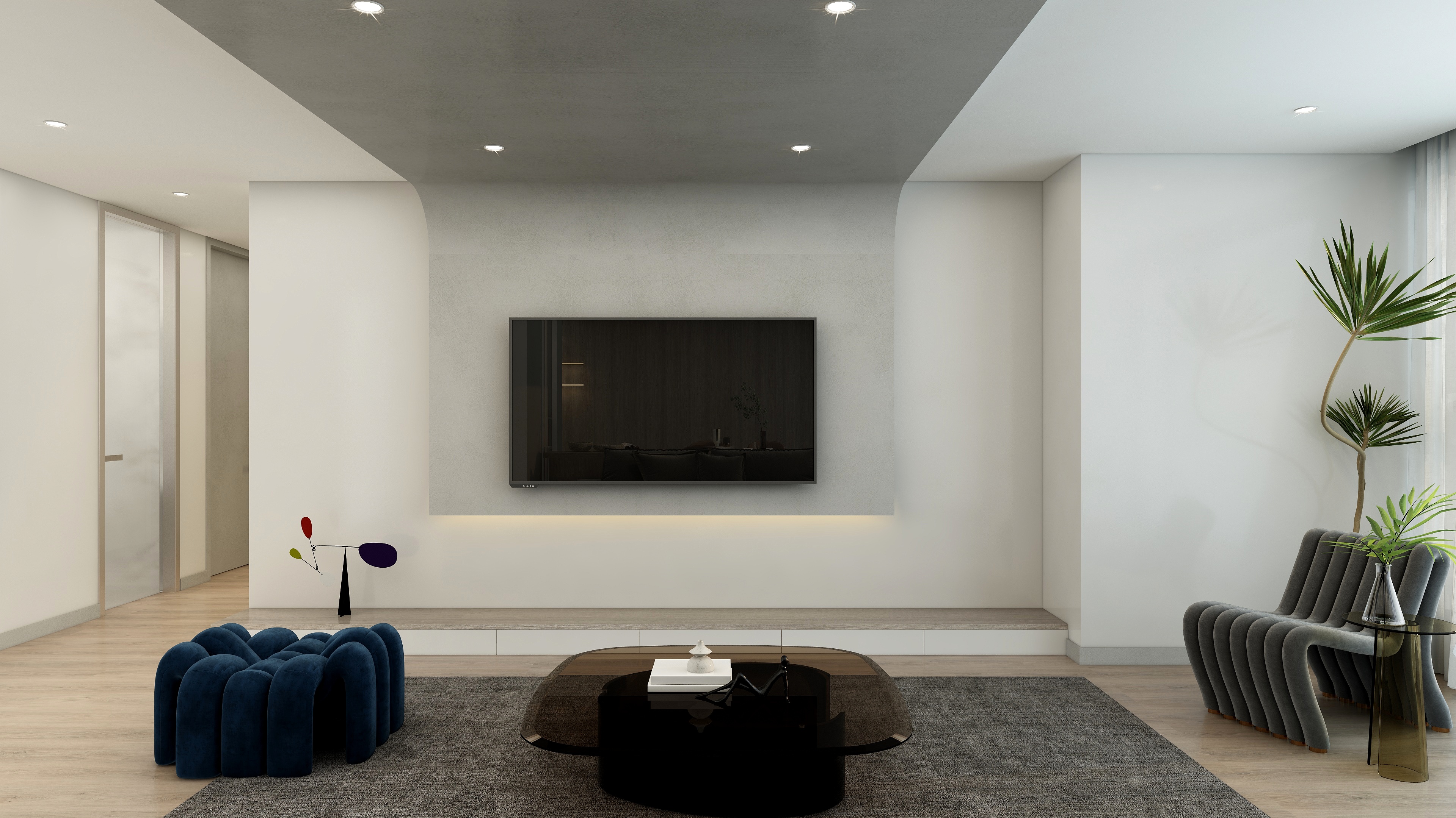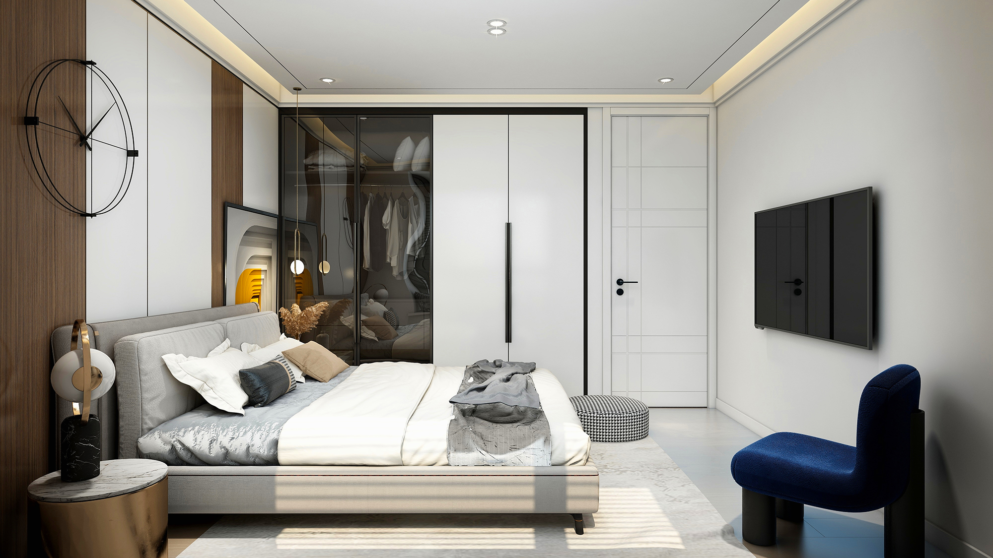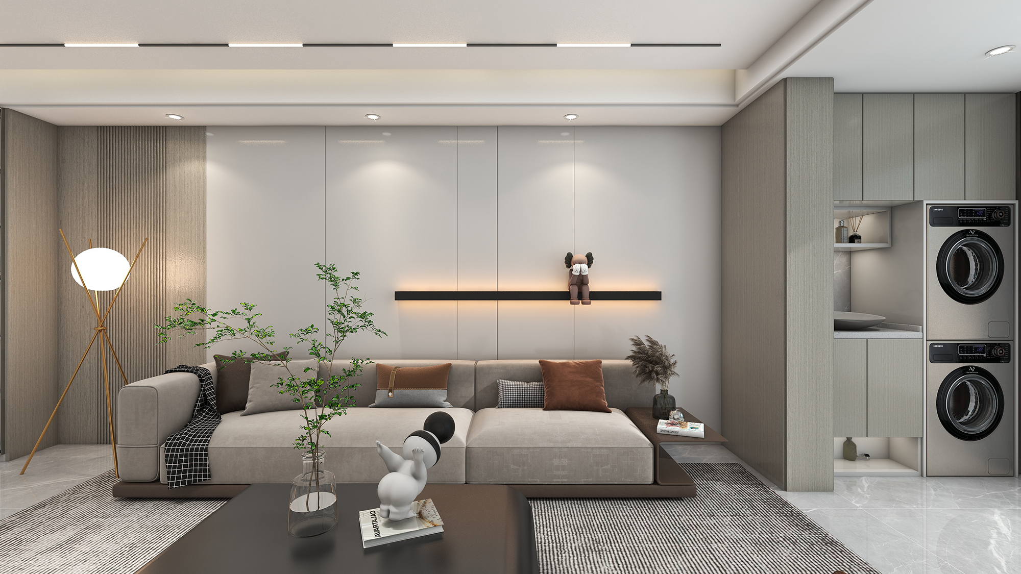 本期设计案例,为现代简约风格,子午灰+银梨2号的色系搭配,极简线条配大面积单色,更符合当下年轻人的偏好。