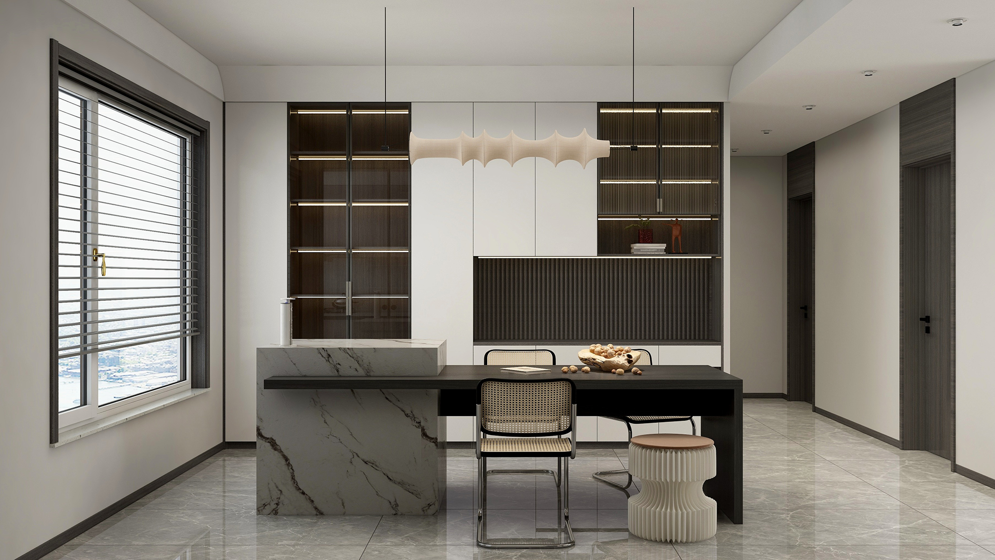 通顶门让空间从视觉上显得高挑大方,通高效果也越来越成为人们对审美的潮流趋势,符合现代人简约大方的审美需求。