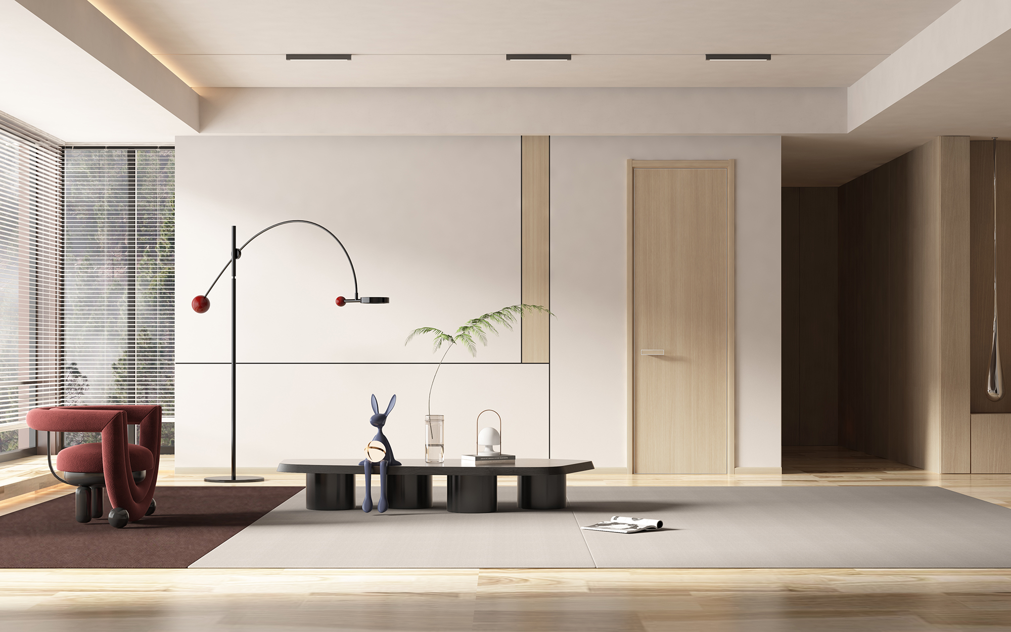 现代极简家装风格一直以来备受追捧,其简洁清爽的设计风格给人以舒适自在的感觉。通常会通过线条与面的组合搭配来精炼空间的设计氛围。 除了柜体、体等设计外,搭配线条设计造型的室内门,同样可提升整体居家的时尚与个性化。