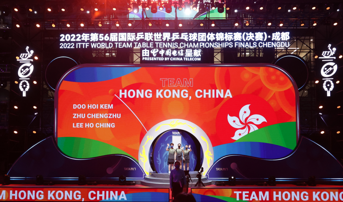 在2022世界乒乓球锦标赛即成都世乒赛场上,“TATA木门旋转”,运动员出场!