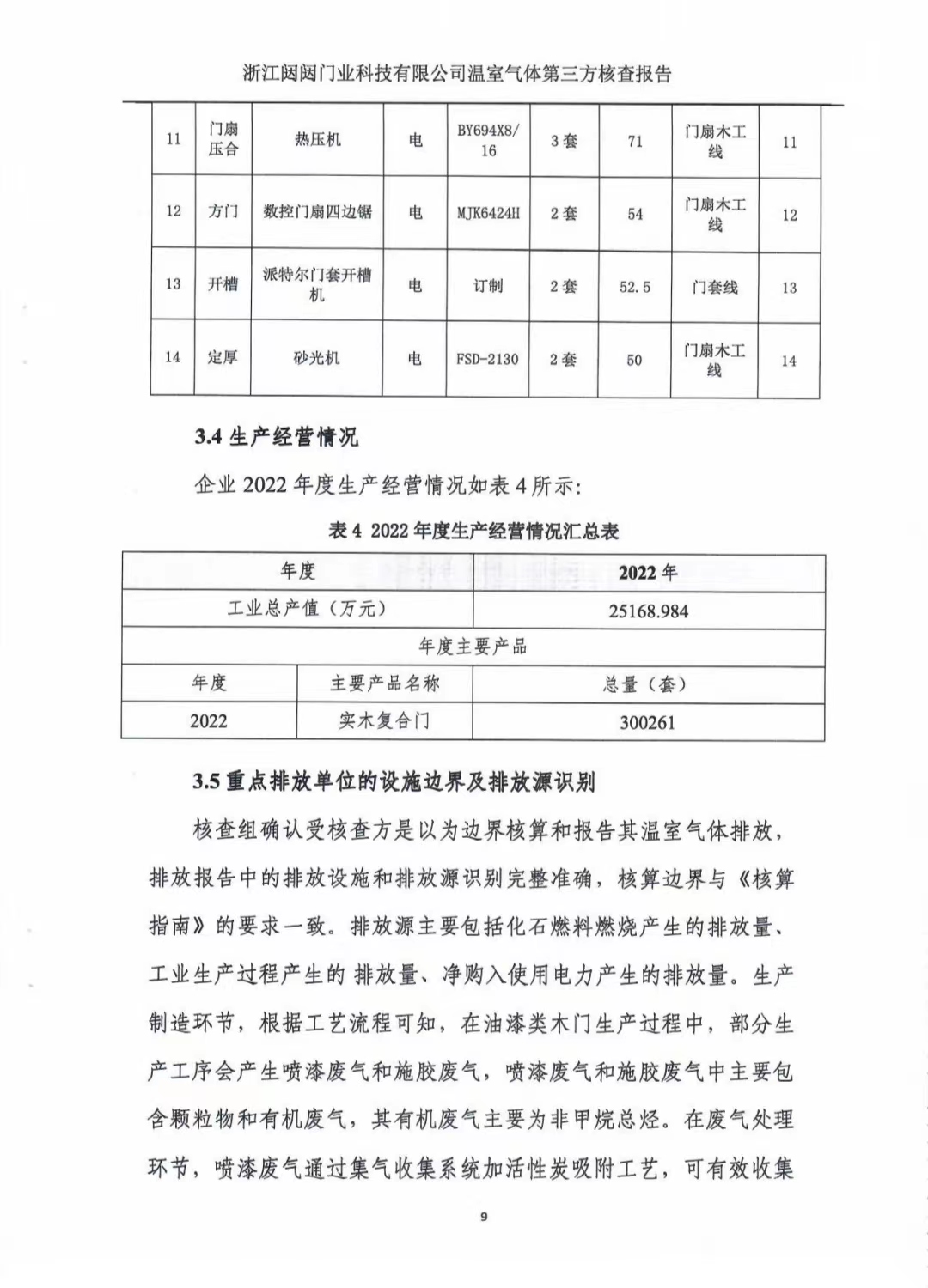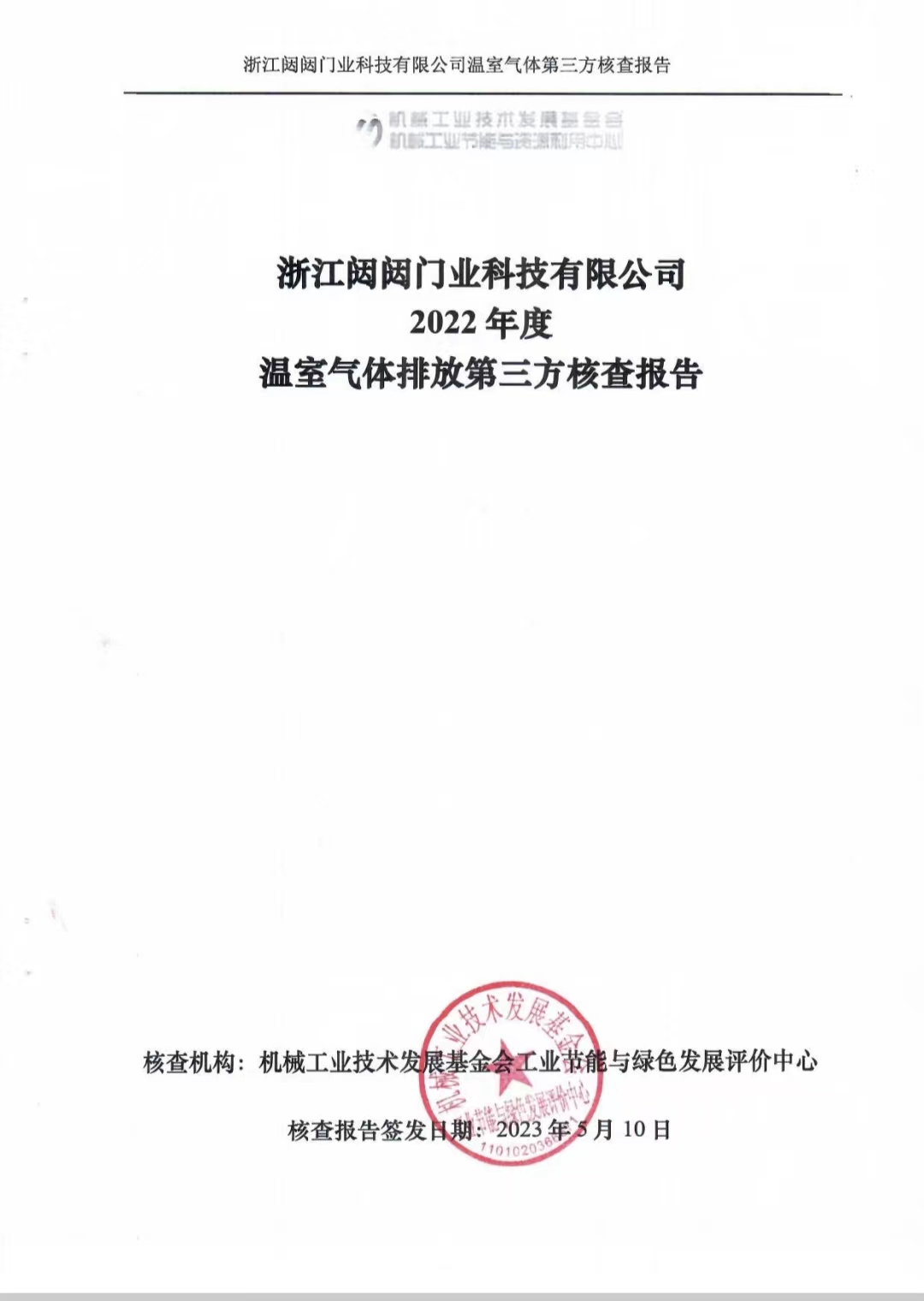 浙江闼闼门业科技有限公司温室气体第三方评价报告