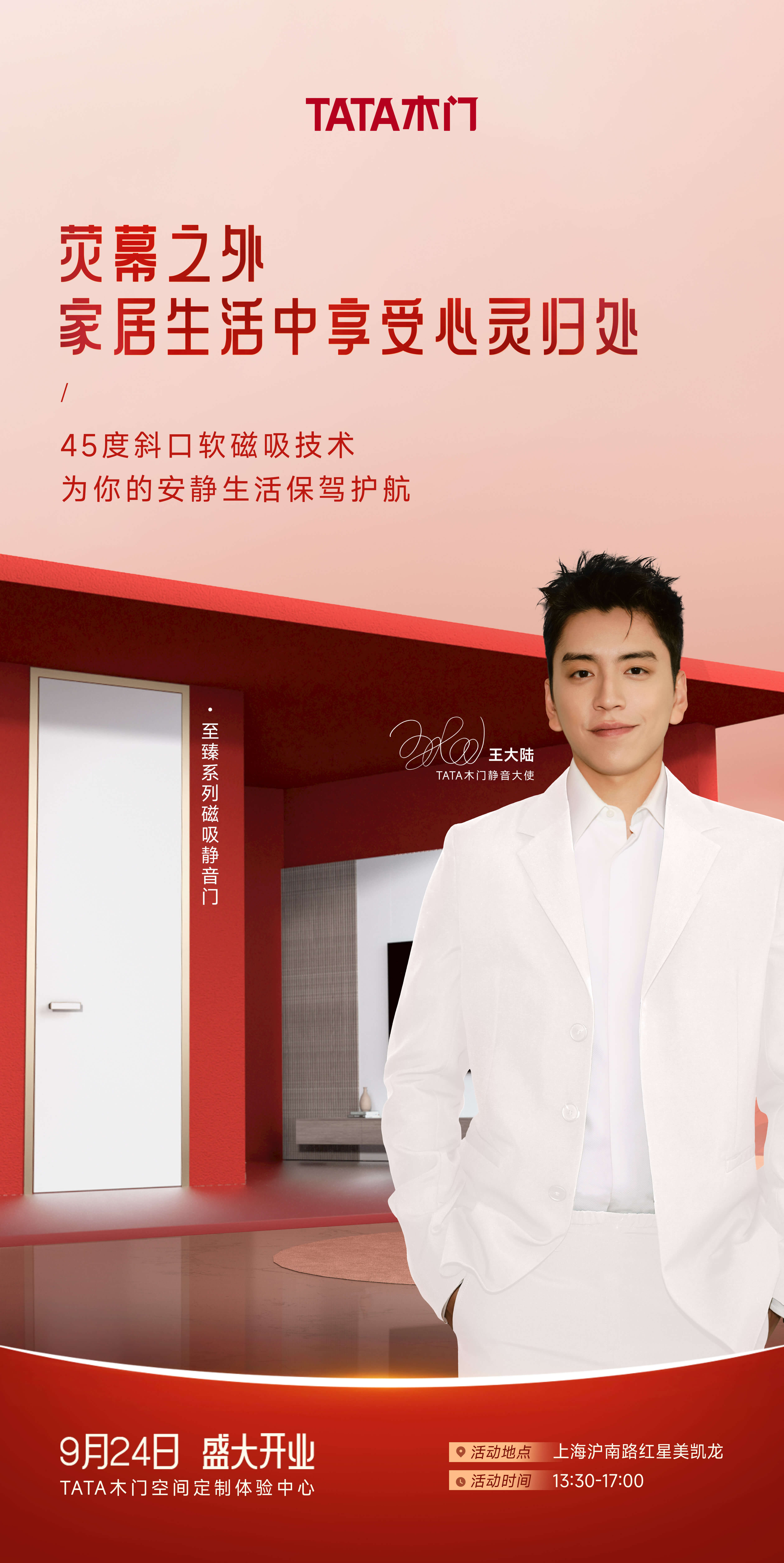 近日,知名家居品牌TATA木门正式官宣,特邀艺人王大陆为“TATA木门静音大使”,双方将共同探索和实现当下家居消费者对理想“静”生活的美好期待。