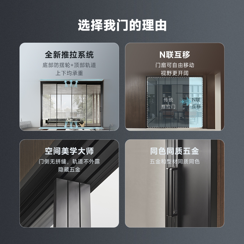 TATA木门 窄边门三联动推拉门卫生间阳台门玻璃门极简谷仓门LB105