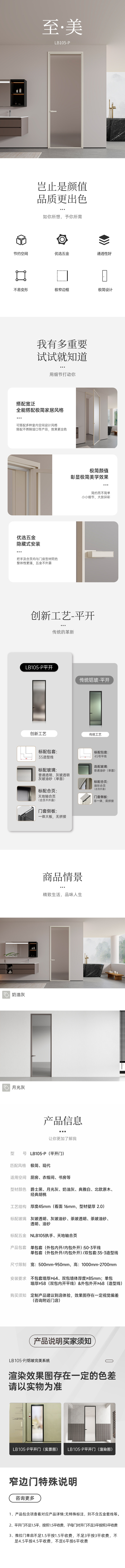 TATA木门窄边卫生间门厕所门铝合金浴室门门LB105P