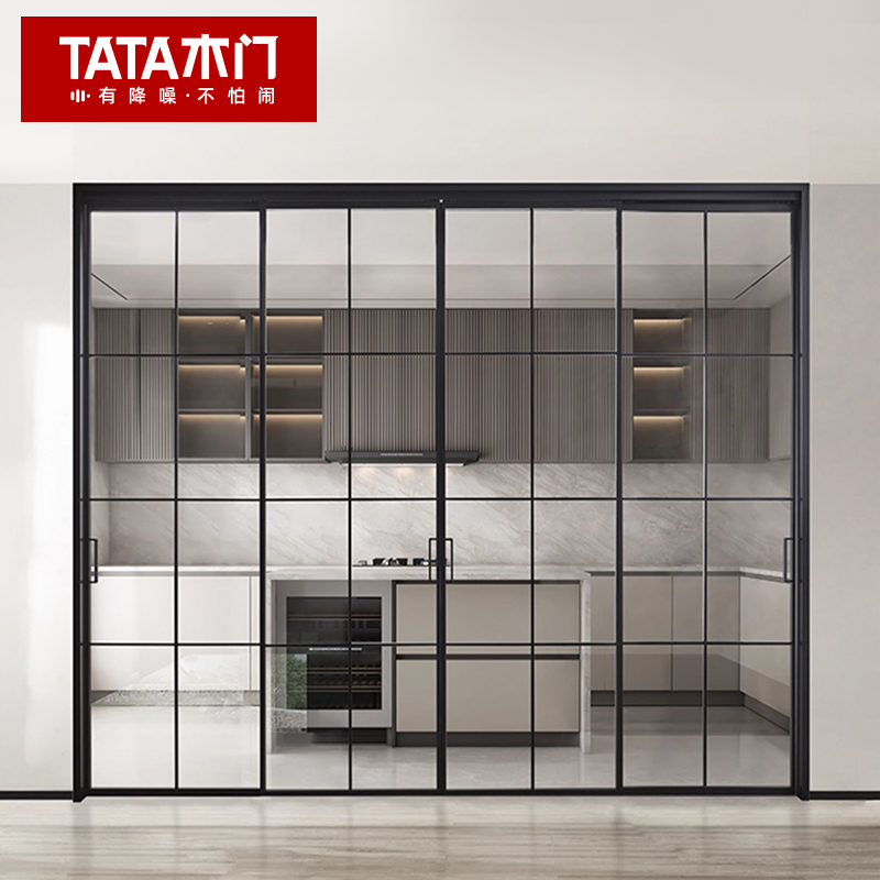 TATA木门北欧田园风阳台玻璃推拉门厨房三联动铝合金推拉门LB302T